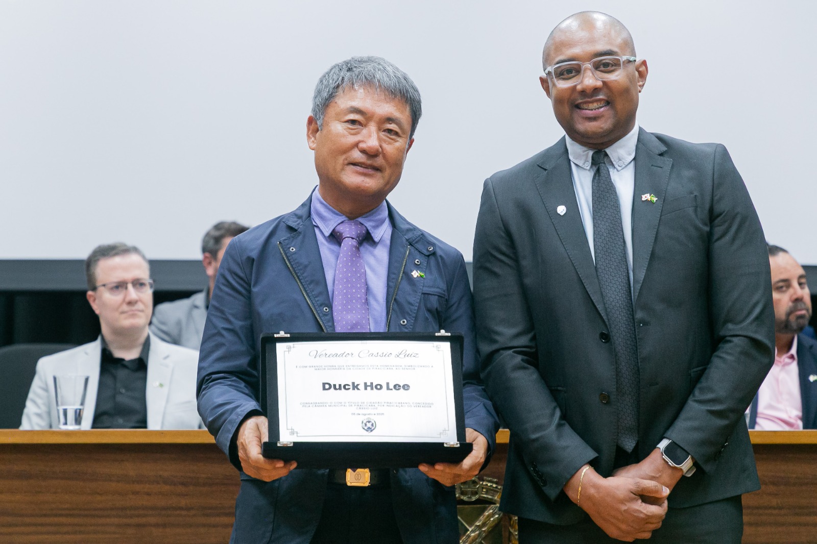 O salão nobre da Casa de Leis ficou repleto de autoridades, amigos e representantes das comunidades coreana e brasileira, que celebraram o momento de reconhecimento. O vereador Cássio Fala Pira, idealizador das homenagens, destacou que o mérito concedido reflete a sólida parceria Brasil-Coreia, especialmente em Piracicaba, onde grandes indústrias e uma expressiva comunidade coreana contribuem para o fortalecimento dessa relação bilateral. Os cliques de Rubens Cardia registram alguns dos melhores momentos desta celebração.