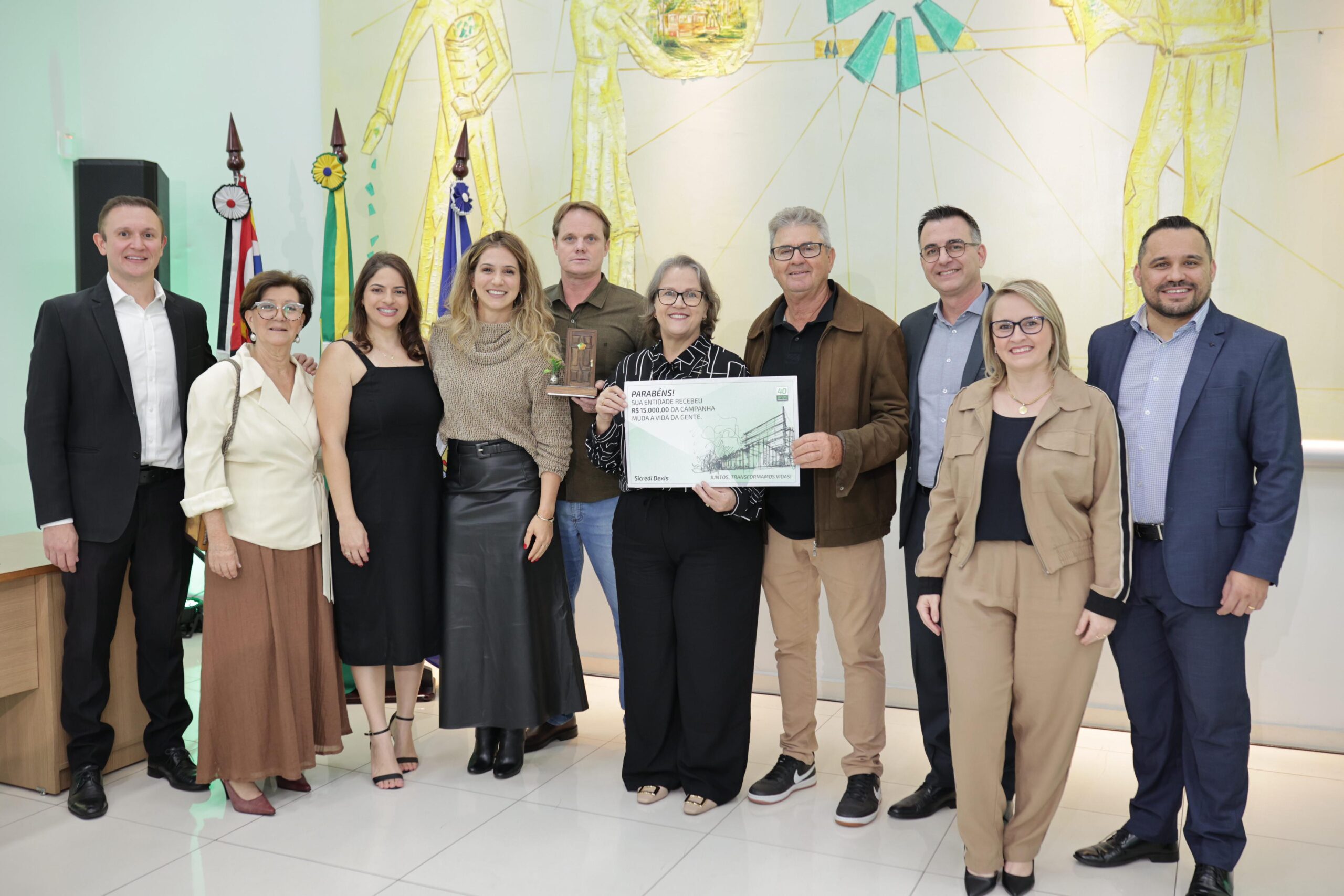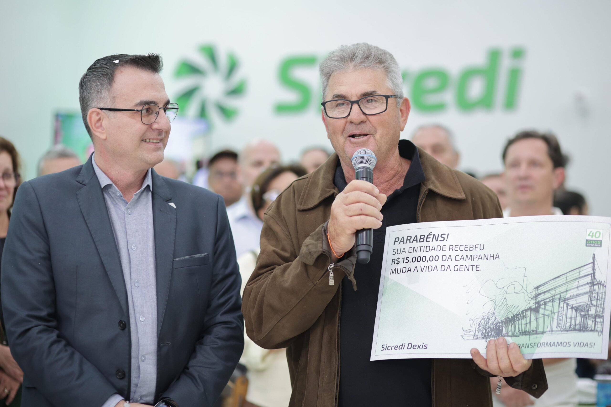 A Sicredi Dexis celebrou seus 40 anos com um grande evento realizado nesta quinta-feira (25), reunindo cerca de 7 mil pessoas em Maringá e nas 112 agências da cooperativa de crédito no Paraná e em São Paulo. A festa foi transmitida ao vivo pelo YouTube e teve como ponto alto a revelação dos ganhadores dos cinco imóveis avaliados em R$ 500 mil cada, totalizando R$ 2,5 milhões em prêmios.
